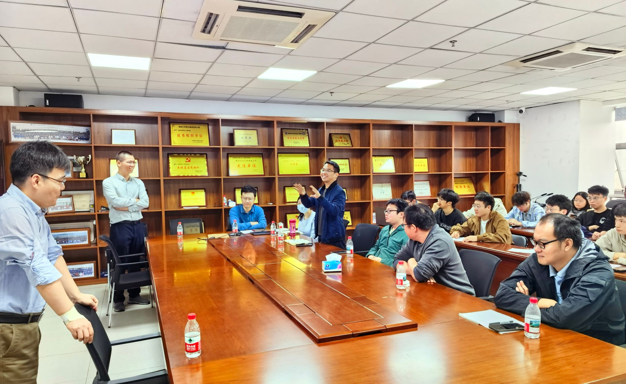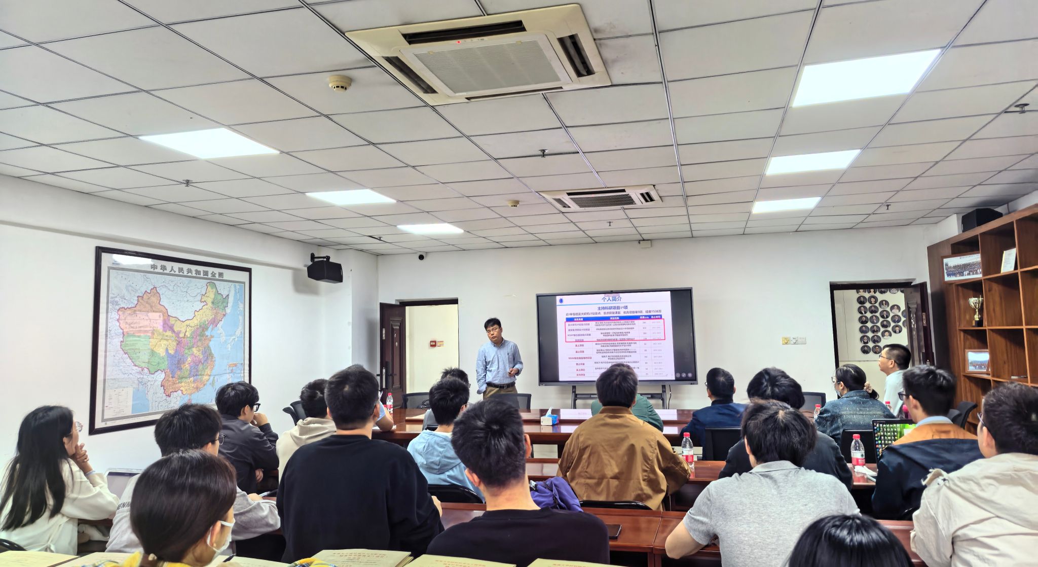施教授结合团队近年研究成果,系统阐释了人工智能在推动储能材料研发从“经验摸索”向“理性设计”转型中的关键作用,并展望了智能技术在未来材料探索中的应用前景。此外,他还分享了国家自然科学基金等项目申报的实践经验,与在场师生进行了深入交流,为青年教师科研成长提供了有益参考。
