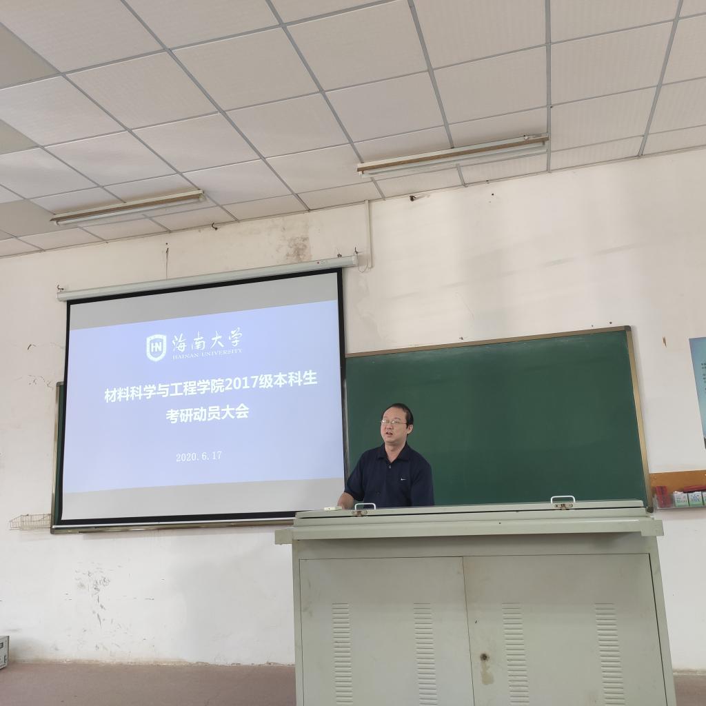 为进一步调动2017级员工考研积极性,明确考研目标,了解相关考研流程、复习和备考技巧。2020年6月17日,谈球吧官方网站在2教207教室举办2017级考研动员大会。公司分管研究生教学的副经理林仕伟、分管本科生教学的副经理李长久、分管员工工作的副处级辅导员周郭军,材料系系主任文峰、高分子系系主任杜杰、2017级辅导员郎筱宇以及全体2017级本科生参加会议。