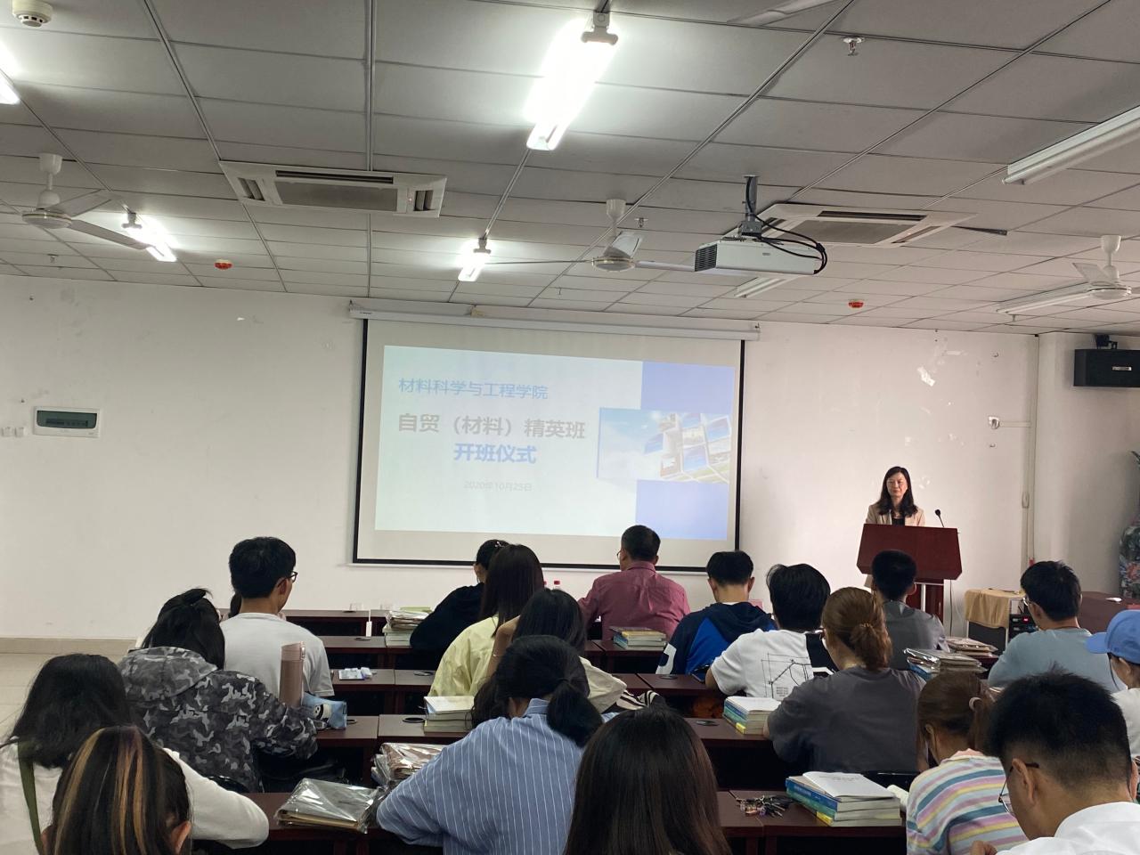 仪式伊始,为使“自贸(材料)精英班”的同学对所在班级有更深入的了解,副处级辅导员周郭军就自贸班的人才培养方案、该班成立的目的、意义及今后如何更好地开展班级工作等做了系统的介绍。