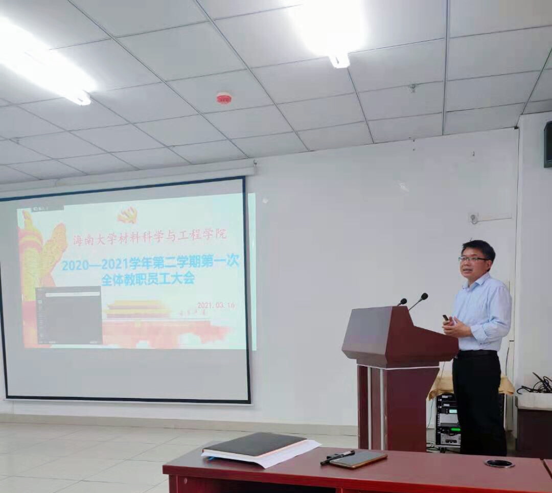 2021年3月16日下午,谈球吧官方网站在研发楼710召开新学期全体职工大会,会议由胡先文书记主持,全体职工参加会议。