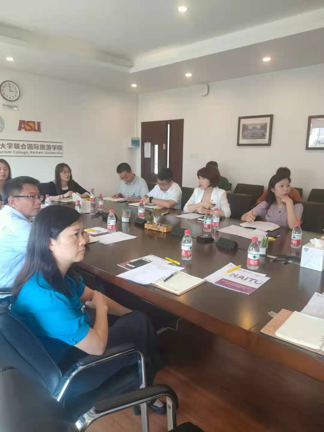 何映敏书记首先代表公司向到访的谈球吧官方网站胡先文书记一行表示欢迎,并介绍了国际旅游公司的概况和整体办学情况,重点介绍了国际旅游公司党建特色做法。通过党建引领落实“立德树人”根本任务,以制度机制保障“三教”改革,以强基固本交流互鉴,增强“四个意识”,以“四史”教育增强国家情怀,成立海南模拟联和社团,以特色社团培养青年精英等。