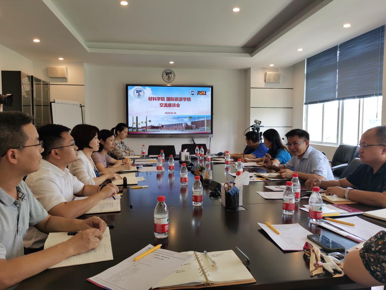 2021年5月28日下午,谈球吧官方网站胡先文书记一行8人到国际旅游公司学习交流。双方在田家炳楼412会议室进行了交流。出席交流会的有材料科学与工程公司党委书记胡先文,副书记周郭军,副经理李长久等,国际旅游公司党委书记何映敏,教学副经理李枚珍等。会议由国际旅游公司党委书记何映敏主持。