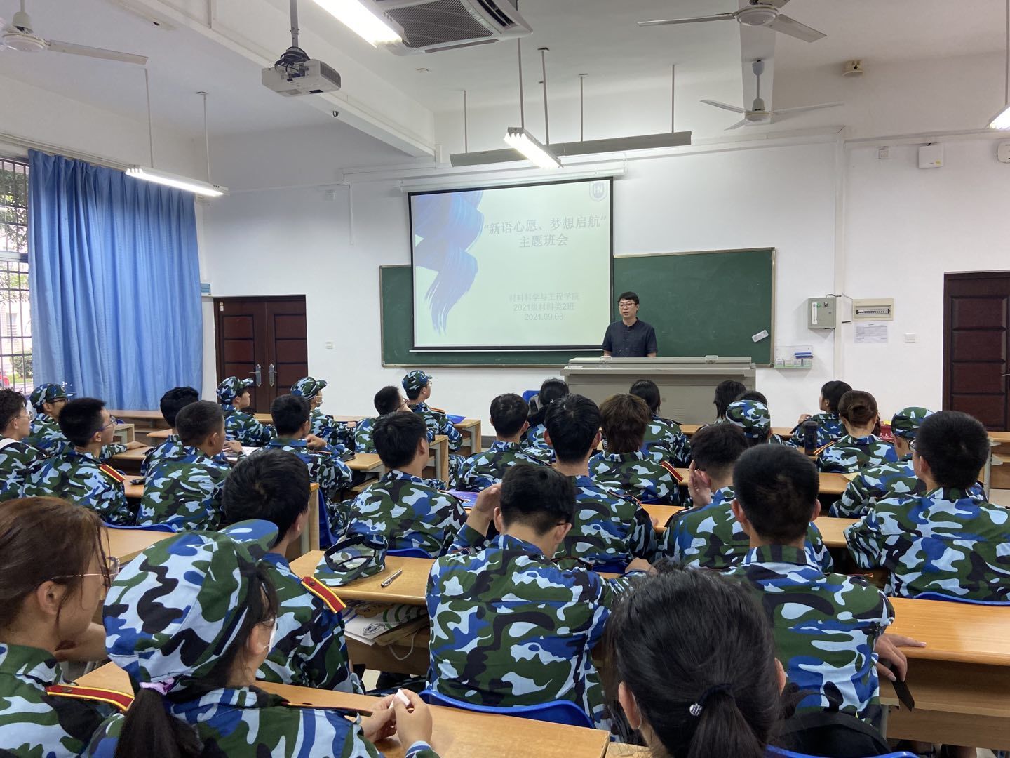 各班班会上,班主任为新生分享自身经验,鼓励新生积极参与各类科研、学术、文体活动中去,成就不一样的精彩老员工活。