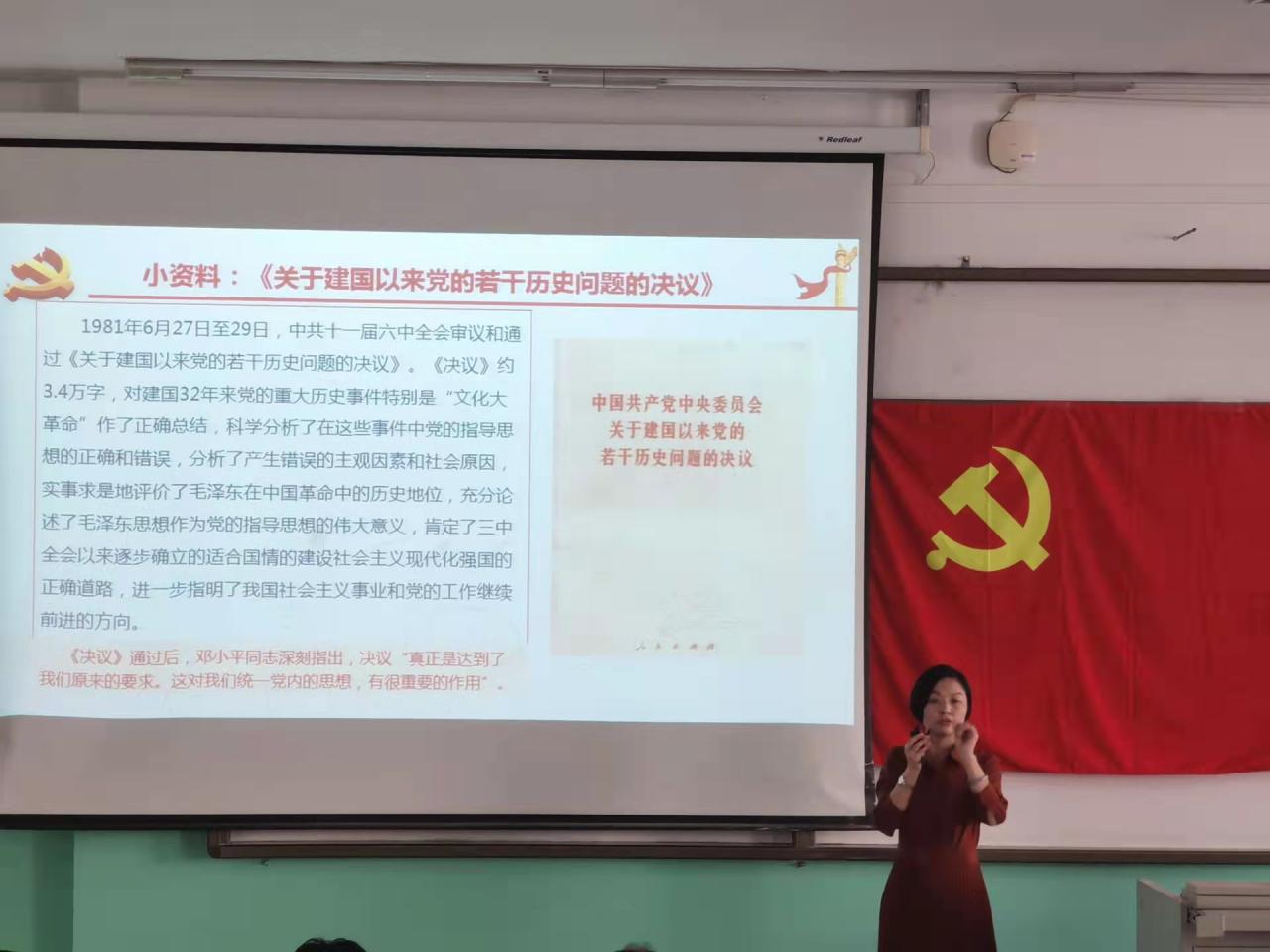 秦经理围绕政治逻辑、理论逻辑、历史逻辑、时代逻辑四个方面对全会召开内在逻辑进行讲解;通过《决议》的基本框架、内容安排特点、“4+13+5+10+1”的主要内容和“1+2+3”的主要亮点来具体讲解精神的精髓要义,点明《决议》的两条重大意义。她指出,学习贯彻全会精神,要紧密结合以习近平新时代中国特色社会主义思想为指导,大力弘扬伟大建党精神,以史为鉴、开创未来,埋头苦干、勇毅前行,为实现中华民族伟大复兴的中国梦而不懈奋斗。