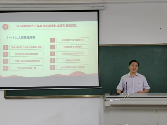 为进一步深入学习贯彻习近平总书记考察海南重要讲话和省第八次党代会精神,助推公司发展,提升内涵建设,6月10日下午,材料科学与工程公司党委和林公司党委联合开展 “学习习近平总书记考察海南重要讲话和省第八次党代会精神”的专题辅导报告会。省第八次党代会精神理论宣讲团专家、公司马克思主义公司涂刚鹏教授受邀主讲,谈球吧官方网站胡先文书记、廖建和经理、林公司樊春书记、许先升副经理,以及两个公司全体党员参加。报告会由周郭军副书记主持,