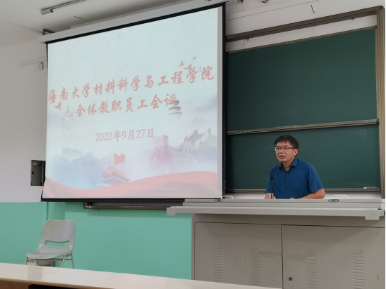 2022年9月27日下午,谈球吧官方网站在研发楼710召开秋季开学全体职工大会,会议由胡先文书记主持,全体职工参加会议。