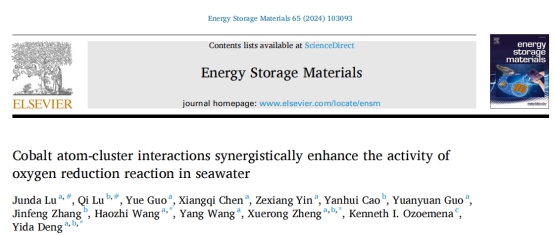近日,谈球吧官方网站邓意达教授团队在知名期刊Energy Storage Materials上发表题为“Cobalt atom-cluster interactions synergistically enhance the activity of oxygen reduction reaction in seawater”的研究论文。
