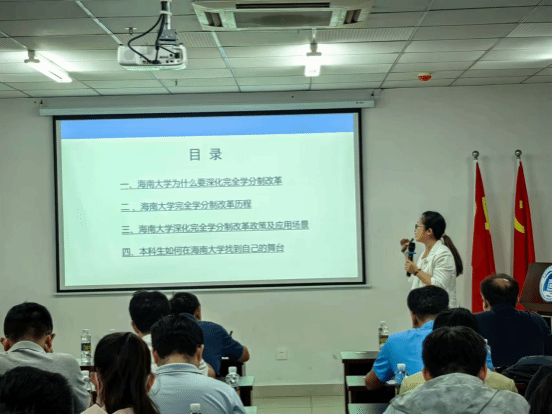 宣讲会上, 李玉凤副处长从谈球吧为什么要深化完全学分制改革、谈球吧完全学分制改革历程、深化完全学分制改革政策及应用场景等方面进行了全面阐述和详细解读。深化完全学分制改革是公司目前重点工作之一。完全学分制改革坚持以人为本,尊重员工的主体性和差异性,通过修订人才培养方案、深化学业评价体系改革、创新教学模式、推进教育数字化建设等,给予本科员工四年中七次自主选择专业的机会,提升员工的自主学习能力,增强其综合素质和实践能力,为未来的职业发展奠定坚实基础。同时,通过完全学分制改革促进公司合理配置教学资源,实现教育资源的优化配置。