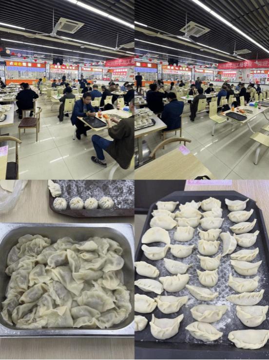 活动通过分组双人背对背夹球来回接力赛、踢毽子、比赛包饺子、比赛吃饺子等多种形式展开。在趣味游戏环节,教职工们展现了他们团结友爱的一面。夹球接力赛考验团队的默契与协作,教师们在欢声笑语中相互配合,踢毽子比赛则让一些平时不常运动的老师跃跃欲试。在包饺子比赛中,三组参赛教师大展身手,饺子包的又快又好,引得全场加油声、喝彩声不断。最终行政组以一分钟包饺子60个的绝对优势获得第一名。随后,全体老师也兴致勃勃地参与到包饺子的过程中,发挥各自的想象力和创造力,包出的饺子形状各异,有元宝形、传统型、花瓣形等等,丰富多彩。