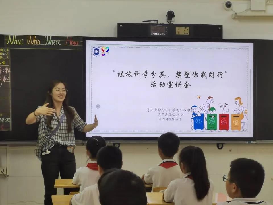 面对前期调研所反应出的情况,实践团决定开展以环保为主的主题宣讲,为此实践团依次到达了事先已经对接的海口市府城中学、三亚市第九小学等约五所小学以及龙华区政府等社区进行了环保主题的宣讲,此宣讲主要分为两大模块,一是“禁塑”,二是“垃圾分类”。通过宣讲过程中同学们以及居民们的反馈,实践团大致了解到目前当地的环保意识已然在不断提升中,“禁塑”和“垃圾分类”已经普遍走进每个人的生活,尽管如此,人们普遍对垃圾分类知识仍存在盲区,但在此次实践团的共同努力下,同学们以及居民们对垃圾分类的认识愈趋全面。