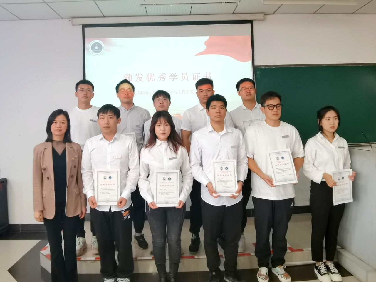 大会对2021下半年发展对象培训班表现优异的学员进行表彰,由党委副书记周郭军获奖学员颁奖。