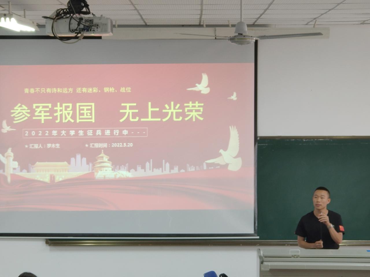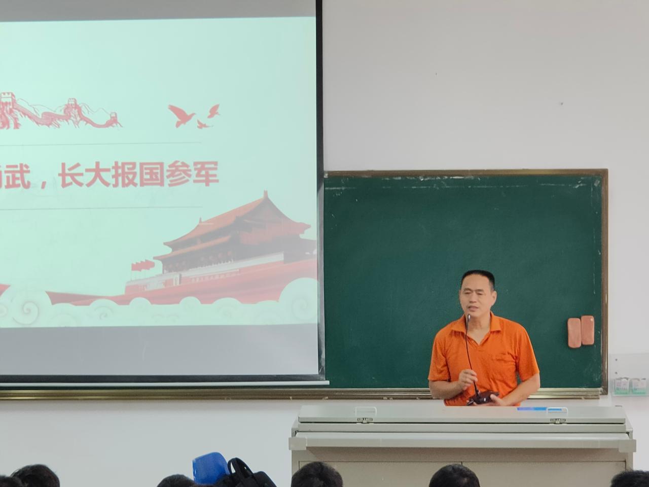 叶泸伟老师结合自身的从军梦想和求学经历来激励同学们积极入伍,向员工强调了老员工参军入伍对军队现代化建设的重要意义,号召同学们踊跃参军入伍,报效国家。