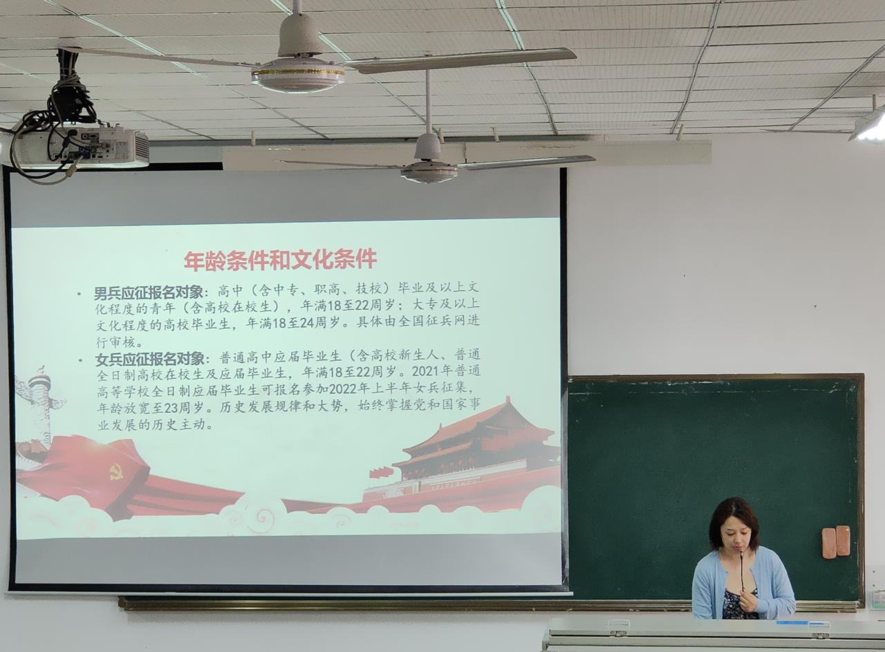 动员大会上,郎筱宇老师从征兵的范围条件、入伍的基本身体条件、征兵程序安排、报名方式、老员工应征入伍的优惠政策等方面为同学们进行了详细解读。鼓励同学们积极响应国家号召,立志献身国防事业。